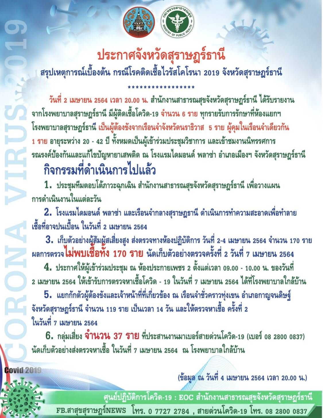 สรุปเหตุการณ์เบื้องต้น กรณีโรคติดเชื้อไวรัสโคโรนา 2019 วันที่ 2 เมษายน 2564