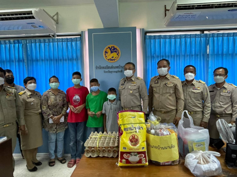 ทั้งนี้ นายวิชวุทย์ จินโต ผู้ว่าราชการจังหวัดสุราษฎร์ธานี ได้ร่วมมอบใบสูติบัตร และบัตรประชาชนให้แก่ บุตรของนางบัวทอง นวนเพ็ง ทั้ง 3 คน พร้อมมอบเงินสงเคราะห์เพื่อใช้จ่ายในครัวเรือน ข้าวสารอาหารแห้ง และของใช้จำเป็นในครัวเรือนอีกด้วย
