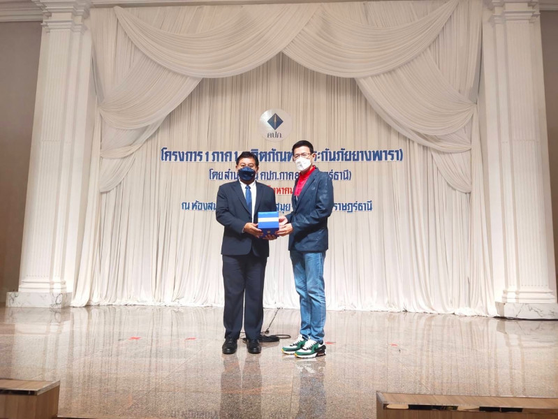นายศักดาพร รัตนสุภา รองผู้ว่าราชการจังหวัดสุราษฎร์ธานี ร่วมเป็นเกียรติและกล่าวต้อนรับ ดร.สุทธิพล ทวีชัยการ เลขาธิการคณะกรรมการกำกับและส่งเสริมการประกอบธุรกิจประกันภัย ในพิธีเปิด " โครงการ 1 จังหวัด 1 ผลิตภัณฑ์ (ประกันภัยยางพารา) " โดยจังหวัดสุราษฎร์ธานี ได้รับการคัดเลือกให้เป็นจังหวัดในการจัดทำโครงการ 1 จังหวัด 1 ผลิตภัณฑ์ โดยได้คัดเลือก ยางพารา ซึ่งเป็นพืชทางการเกษตรที่จะนำระบบการประกันภัยมาเป็นเครื่องมือในการบริหารความเสี่ยงให้กับกลุ่มเกษตรกร โดยมีผู้เข้ารับการฝึกอบรม 130 คน