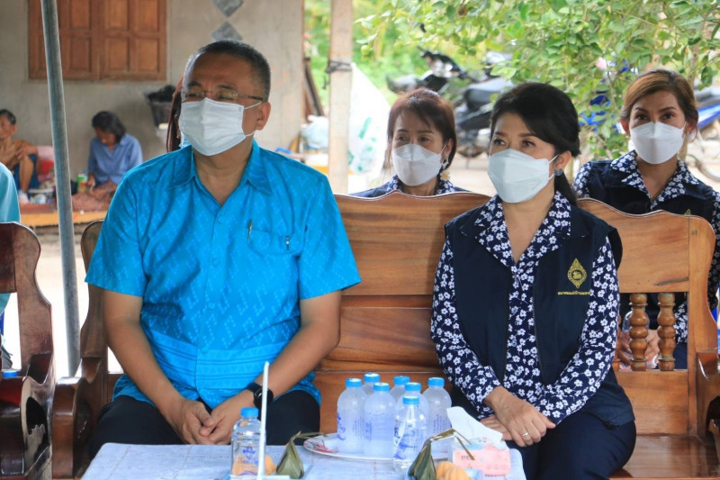 นายวิชวุทย์ จินโต ผู้ว่าราชการจังหวัดสุราษฎร์ธานี พร้อมด้วยนางอุรสา จินโต ประธานแม่บ้านมหาดไทยจังหวัดสุราษฎร์ธานี/นายกเหล่ากาชาดจังหวัดสุราษฎร์ธานี ร่วมกิจกรรมติดตามผลการขับเคลื่อนงานขจัดความยากจนและพัฒนาคนทุกช่วงวัยอย่างยั่งยืน ตามหลักเศรษฐกิจพอเพียงของ ศจพ.อำเภอท่าฉาง ณ ครัวเรือนเปราะบาง นางบุญช่วย วอทอง บ้านเลขที่ 110 หมู่ที่ 4 บ้านคลองวัว ตำบลท่าเคย อำเภอท่าฉาง