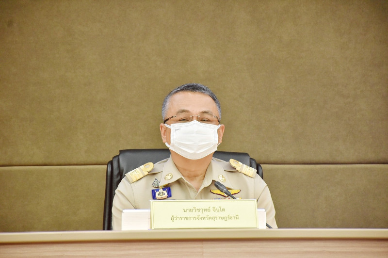 โดยมีพล.ต.ต.ศรัญญู ชำนาญราช ผบก.ภ.จว.สฏ พ.อ.ฐิติพงษ์ อินวะษา รอง ผบ.มทบ.45 นายกล้าณรงค์ ยุติธรรม หัวหน้าสำนักงานจังหวัด ทหาร ตำรวจ เจ้าหน้าที่สาธารณสุข และหน่วยงานที่เกี่ยวข้อง ทั้งนี้ในที่ประชุมได้มีการประชุม Video Conference ผ่านระบบ Zoom meeting กับหน่วยงานต่างๆที่เกี่ยวข้องด้วยเช่นกัน