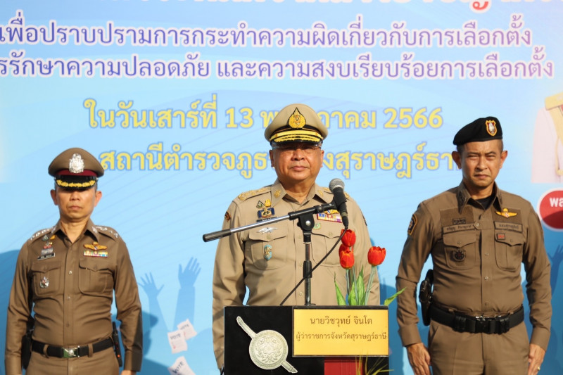 ผู้ว่าราชการจังหวัดสุราษฎร์ธานี กล่าวว่า การระดมกวาดล้างอาชญากรรม ก่อนการเลือกตั้ง ในครั้งนี้ เป็นนโยบายสำคัญของรัฐบาลและ สำนักงานตำรวจแห่งชาติ เพื่อเตรียมความพร้อม ก่อนการเลือกตั้ง เพื่อปราบปรามการกระทำความผิดเกี่ยวกับการเลือกตั้ง การรักษาความปลอดภัย ความสงบเรียบร้อย และสามารถ ระงับยับยั้งเหตุ ได้อย่างทันท่วงที โดยเฉพาะตั้งแต่เวลา 18:00 น ของวันนี้ (13 พ.ค.66) ไปจนถึงเที่ยงคืนของวันที่ 14 พฤษภาคม 2566 จะเป็นช่วงที่ห้ามหาเสียงเลือกตั้งรวมถึง มีข้อห้ามจัดเลี้ยง จำหน่ายจ่ายแจก สุราเครื่องดื่มแอลกอฮอล์ จึงขอความร่วมมือให้พี่น้องประชาชนปฏิบัติตามกฎหมายเลือกตั้ง เพื่อให้การจัดการเลือกตั้ง สมาชิกสภาผู้แทนราษฎร ในครั้งนี้ เป็นไปด้วยความเรียบร้อย สำเร็จลุล่วง ตามเจตนารมณ์ของรัฐธรรมนูญ นำไปสู่การจัดตั้งรัฐบาลใหม่เพื่อเข้ามาพัฒนาประเทศต่อไป
