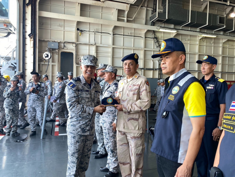 รองผู้ว่าราชการจังหวัดสุราษฎร์ธานี ร่วมต้อนรับ พลเรือเอก อะดุง พันธุ์เอี่ยม ผู้บัญชาการทหารเรือและคณะ รวมทั้งร่วมชมการฝึกให้ความช่วยเหลือด้านมนุษยธรรมและ บนเรือหลวงอ่างทอง ศรชล.จ.สุราษฎร์ธานี