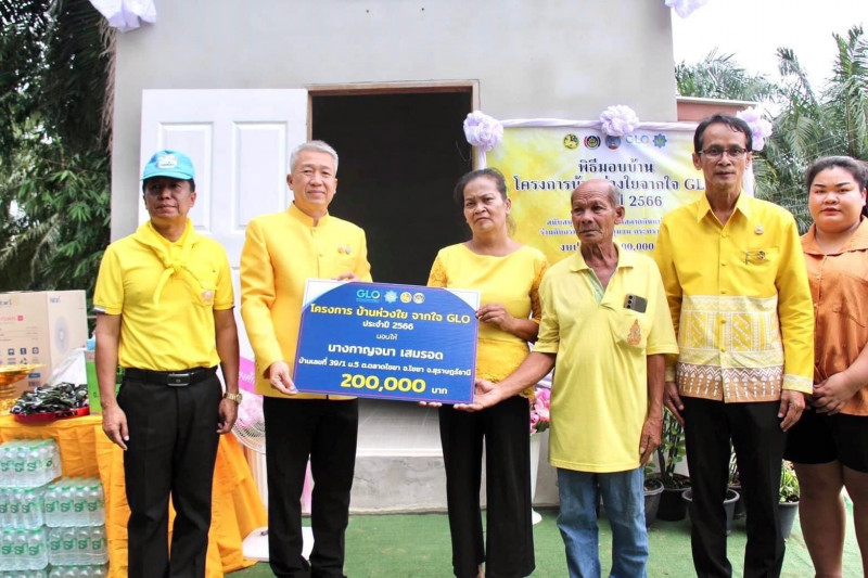 รองผู้ว่าราชการจังหวัดสุราษฎร์ธานี เป็นประธานในพิธีส่งมอบบ้านครัวเรือนยากจน ตามโครงการบ้านห่วงใยจากใจ GLO ณ ครัวเรือน