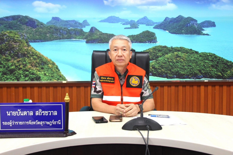 นายบันดาล สถิรชวาล รองผู้ว่าราชการจังหวัดสุราษฎร์ธานี พร้อมด้วยหัวหน้าส่วนราชการ และ หน่วยงานที่เกี่ยวข้อง เข้าร่วมการประชุมกองอำนวยการป้องกันและบรรเทาสาธารณภัยกลาง (กอปภ.ก.) ผ่านระบบสื่อสารทางไกลจากกรมป้องกันและบรรเทาสาธารณภัย โดยมีนายภาสกร บุญญลักษม์ อธิบดีกรมป้องกันและบรรเทาสาธารณภัย ผู้บริหาร ผู้แทนหน่วยงานที่เกี่ยวข้องในส่วนกลาง ตลอดจน ผู้บริหาร และส่วนราชการในจังหวัดภาคใต้ ร่วมประชุม เพื่อติดตามสถานการณ์อุทกภัยในพื้นที่ภาคใต้ การให้ความช่วยเหลือตลอดจน นำเสนอข้อมูลแบบจำลองสภาพอากาศเพื่อการเตือนภัยแก่ประชาชนในช่วงเดือนธันวาคมนี้