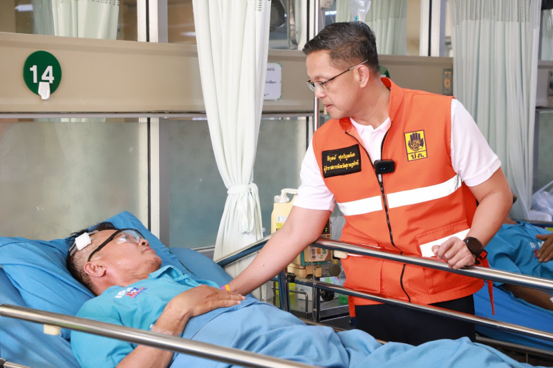 ผู้ว่าราชการจังหวัดสุราษฎร์ธานี เยี่ยมอาการและให้กำลังใจผู้ได้รับบาดเจ็บ จากอุบัติเหตุรถบัสนำเที่ยวตกร่องกลางถนนชนต้นไม้ เมื่อคืนวันที่ 1 มกราคม 2568 ที่ยังรักษาตัวอยู่ในโรงพยาบาล ล่าสุดอาการปลอดภัยทุกคน