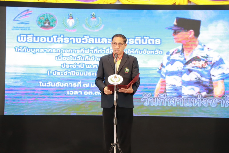 รองผู้ว่าราชการจังหวัดสุราษฎร์ธานี เป็นประธานใน พิธีมอบโล่รางวัลและเกียรติติบัตรให้กับนักกีฬาและบุคลากรทางการกีฬาเนื่องในวันกีฬาแห่งชาติประจำปี 2567 ประจำปีงบประมาณ พ.ศ. 2568