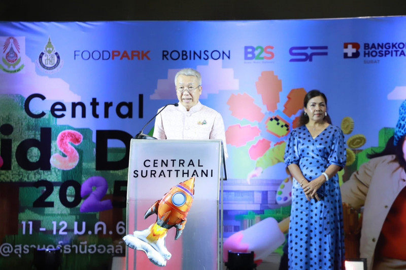 นายบันดาล สถิรชวาล รองผู้ว่าราชการจังหวัดสุราษฎร์ธานี เป็นประธานเปิดกิจกรรม Central Kids Day 2025 เนื่องในวันเด็กแห่งชาติประจำปี 2568 โดยมี คุณอารยา เค้าอุทัย ผู้อำนวยการศูนย์การค้าเซ็นทรัล สุราษฎร์ธานี นางทัศนียาพร ดวงแก้ว ประชาสัมพันธ์จังหวัดสุราษฎร์ธานี นางสาวนภัทร สุมะโน ผู้อำนวยการสถานีวิทยุโทรทัศน์แห่งประเทศไทยจังหวัดสุราษฎร์ธานี นางสาวมัณฑนา ภูธรารักษ์ ผู้อำนวยการการท่องเที่ยวแห่งประเทศไทยสำนักงานสุราษฎร์ธานี ผู้แทนหน่วยงานภาครัฐและเอกชน ร่วมเป็นเกียรติในพิธีเปิดกิจกรรม ซึ่งศูนย์การค้าเซ็นทรัลสุราษฎร์ธานี ร่วมกับหน่วยงานภาคส่วนต่างๆ อาทิ โรงเรียนมอ.วิทยานุสรณ์ กองพันทหารราบที่ 3 กรมทหารราบที่ 25 บริษัทวีกรุ๊ป คาร์สุราษฎร์ธานี บริษัทเพชรศรีวิชัย เอ็นเตอร์ไพรส์จำกัด (มหาชน) และบริษัทในเครือเซ็นทรัล นำของขวัญกว่า 2,000 ชิ้น และกิจกรรมต่างๆ มาให้เด็กๆ ได้เรียนรู้ ส่งเสริมพัฒนาการของนักเรียนทั้งด้านร่างกาย จิตใจ สติปัญญา และทักษะทางสังคม ผ่านกิจกรรมสร้างสรรค์และเสริมสร้างทักษะแห่งโลกอนาคต อาทิ ท้องฟ้าจำลองจากโรงเรียน มอ.วิทยานุสรณ์ , รถไฟฟ้าตะลุยอวกาศ ทำลูกเต๋าดวงดาว สนุกสนานกับเครื่องเล่นบ้านลมยักษ์ ช็อปสินค้า Kids Market ตลาดหนูน้อย ที่เปิดโอกาสให้ผู้ปกครองและบุตรหลาน นำสินค้ามือหนึ่ง มือสอง มาจำหน่าย เพื่อปลูกฝังการฝึกอาชีพ การจัดแสดงยุทโธปกรณ์ของกองทัพบก และ, บูธกิจกรรมต่างๆ ให้ได้ร่วมสนุกกับฐานเกมส์ต่างๆ รับฟรีของรางวัล