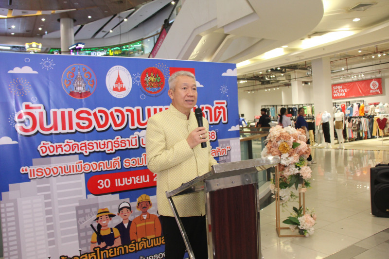 นายบันดาล สถิรชวาล รองผู้ว่าราชการจังหวัดสุราษฎร์ธานี เป็นประธานเปิดกิจกรรมวันแรงงานแห่งชาติ จังหวัดสุราษฎร์ธานี ประจำปี พ.ศ.2568 "แรงงานเมืองคนดี รวมใจสามัคคี บริจาคโลหิต" โดยหน่วยงานในสังกัดกระทรวงแรงงานในพื้นที่จังหวัดสุราษฎร์ธานี ร่วมกับภาคส่วนต่างๆ ทั้งเหล่ากาชาด เครือข่ายด้านแรงงานในระบบ อาสาสมัครแรงงาน แรงงานนอกระบบ และภาคเอกชน จัดขึ้น ณ ลานกิจกรรมชั้น 2 ห้างสหไทยการ์เด็นพลาซ่า สุราษฎร์ธานี มีผู้เข้าร่วมกิจกรรมกว่า 200 คน