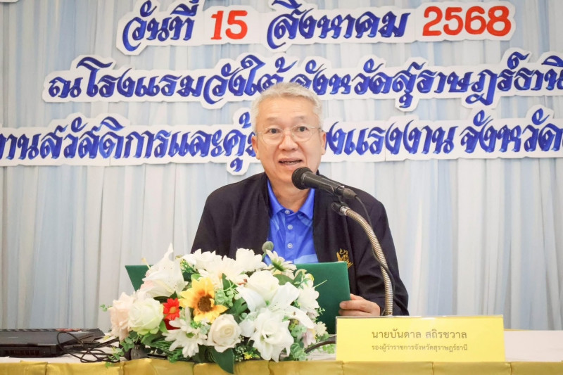 รองผู้ว่าราชการจังหวัดสุราษฎร์ธานี เป็นประธานในพิธีเปิดการอบรมโครงการเสริมสร้างความรู้ให้แก่นายจ้างหรือผู้ประกอบการเพื่อป้องกันการกระทำผิดกฎหมายแรงงาน