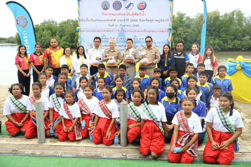 รองผู้ว่าราชการจังหวัดสุราษฎร์ธานี เป็นประธานพิธีปล่อยพันธุ์สัตว์น้ำ เนื่องในวันประมงแห่งชาติ ประจำปี 2568