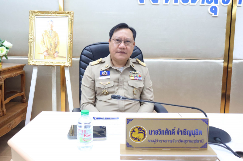 นายธีรุตม์ ศุภวิบูลย์ผล ผู้ว่าราชการจังหวัดสุราษฎร์ธานี เป็นประธานการประชุมเพื่อรับมอบแนวทางการปฏิบัติราชการของสำนักงานจังหวัดสุราษฎร์ธานี เพื่อติดตามความก้าวหน้าในการปฏิบัติงานของแต่ละกลุ่มงานให้มีประสิทธิภาพ และเป็นไปด้วยความเรียบร้อย โดยมีนายวิทศักดิ์ จำเริญนุสิต รองผู้ว่าราชการจังหวัดสุราษฎร์ธานี ผู้บริหาร บุคลากร และเจ้าหน้าที่สำนักงานจังหวัดสุราษฎร์ธานี เข้าร่วมการประชุม ณ ห้องเมืองคนดี ศาลากลางจังหวัดสุราษฎร์ธานี