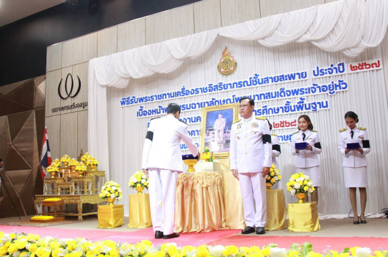 โดยพิธีดังกล่าวสำนักงานเขตพื้นที่การศึกษาประถมศึกษาสุราษฎร์ธานี เขต 1 ร่วมกับเขตพื้นที่การประถมศึกษา และสำนักงานเขตพื้นที่การศึกษามัธยมศึกษา ที่ตั้งอยู่ในจังหวัดสุราษฎร์ธานี ดำเนินการจัดพิธีรับพระราชทานเครื่องราชอิสริยาภรณ์ชั้นสายสะพายประจำปี 2567 เบื้องหน้าพระบรมฉายาลักษณ์พระบาทสมเด็จพระเจ้าอยู่หัว โดยมีผู้รับพระราชทานเครื่องราชอิสริยาภรณ์ชั้นสายสะพายจำนวน 26 ราย
