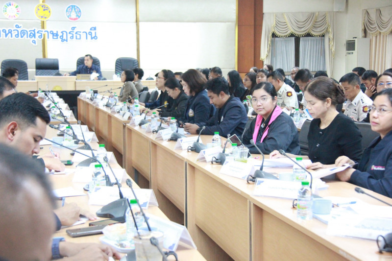 นายจักรกฤษณ์ ฝั่งชลจิตร์ รองผู้ว่าราชการจังหวัดสุราษฎร์ธานี เป็นประธานประชุมคณะกรรมการศูนย์อำนวยการป้องกันและปราบปรามยาเสพติดจังหวัดสุราษฎร์ธานี (ศอ.ปส.จ.สฎ.) ครั้งที่ 1/2569 ณ ห้องเมืองคนดี ชั้น 5 ศาลากลางจังหวัดสุราษฎร์ธานี เพื่อติดตามสถานการณ์ยาเสพติดในพื้นที่ 19 อำเภอของจังหวัดสุราษฎร์ธานี และร่วมกำหนดแนวทางการดำเนินงานในระยะต่อไป ให้บรรลุผลอย่างเป็นรูปธรรม ทั้งในส่วนของการป้องกันในกลุ่มผู้มีโอกาสเข้าไปเกี่ยวข้องกับยาเสพติด การป้องกันและปราบปรามในพื้นที่เสี่ยง การขยายการมีส่วนร่วมของชุมชนในการแก้ไขปัญหายาเสพติด การแก้ไขปัญหาผู้เสพที่อยู่ในกระบวนการยุติธรรม การฟื้นฟูสภาพทางสังคม การปราบปรามเจ้าหน้าที่ของรัฐที่เกี่ยวข้องกับยาเสพติด และการทำลายเครือข่ายผู้ค้าด้วยมาตรการทางทรัพย์สิน