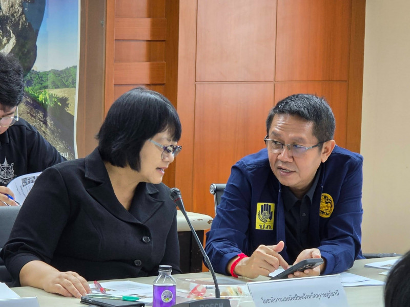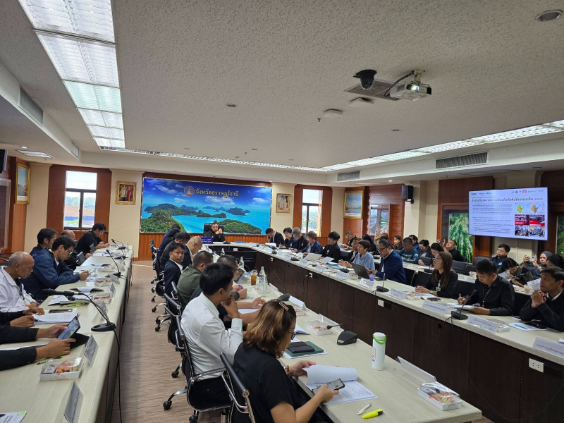 นายจุมพฏ วรรณฉัตรสิริ ผู้ว่าราชการจังหวัดสุราษฎร์ธานี เป็นประธานประชุมหารือคณะกรรมการที่ปรึกษาโครงการระดับจังหวัด ครั้งที่ 3 ภายใต้โครงการเสริมสร้างความสามารถของเมืองและธรรมชาติในการตั้งรับปรับตัวต่อผลกระทบจากวิกฤติสภาพภูมิอากาศ จังหวัดสุราษฎร์ธานี โดยมีคณะกรรมการที่ปรึกษาโครงการฯ คณะทำงาน และผู้แทนจากหน่วยงานภาครัฐ ภาควิชาการ และองค์กรภาคีเครือข่ายที่เกี่ยวข้องเข้าร่วม เพื่อร่วมติดตามความก้าวหน้า กำหนดทิศทาง และบูรณาการการดำเนินงานด้านการปรับตัวต่อการเปลี่ยนแปลงสภาพภูมิอากาศในระดับจังหวัดอย่างเป็นระบบ