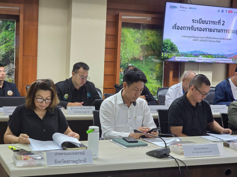 สำหรับการประชุมครั้งนี้ ที่ประชุมได้รับทราบความก้าวหน้าการดำเนินงานของโครงการและภาคีเครือข่ายในช่วงปี พ.ศ. 2566 – 2568 พร้อมร่วมพิจารณาแผนการดำเนินงานต่อเนื่องในปี พ.ศ. 2569 โดยให้ความสำคัญกับการดำเนินมาตรการสาธิตในพื้นที่นำร่อง 3 แห่ง ได้แก่ สวนสาธารณะสวนหลวง ร.9 หย่อมป่าพรุ มหาวิทยาลัยราชภัฏสุราษฎร์ธานี และบึงขุนทะเล รวมถึงการร่วมกำหนดแนวทางการขับเคลื่อนแผนพื้นที่ชุ่มน้ำระดับจังหวัด เพื่อให้การดำเนินงานสอดคล้องกับบริบทพื้นที่และแผนพัฒนาจังหวัดสุราษฎร์ธานี ซึ่งจะช่วยเพิ่มความมั่นคงด้านทรัพยากรธรรมชาติ ลดความเปราะบางของชุมชน สร้างพื้นที่สีเขียวและแหล่งเรียนรู้ด้านสิ่งแวดล้อม ตลอดจนยกระดับคุณภาพชีวิตของประชาชนให้สามารถอยู่ร่วมกับการเปลี่ยนแปลงสภาพภูมิอากาศได้อย่างยั่งยืน