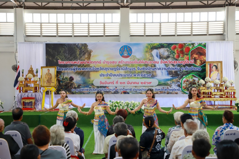 นายจุมพฏ วรรณฉัตรสิริ ผู้ว่าราชการจังหวัดสุราษฎร์ธานี พร้อมด้วย นายจักรกฤษณ์ ฝั่งชลจิตร์ รองผู้ว่าราชการจังหวัดสุราษฎร์ธานี นำหัวหน้าส่วนราชการ หน่วยงานภาครัฐ และภาคเอกชน ลงพื้นที่เปิดโครงการ “หน่วยบำบัดทุกข์ บำรุงสุข สร้างรอยยิ้มให้ประชาชน” ประจำปี 2569 โดยมี นายอุทัย เทือกสุบรรณ นายอำเภอบ้านนาสาร ให้การต้อนรับ เพื่อให้บริการเชิงรุกและรับฟังปัญหาความเดือดร้อนของประชาชนอย่างใกล้ชิด