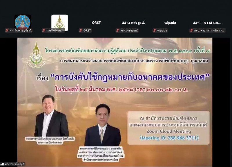 รองผู้ว่าราชการจังหวัดสุราษฎร์ธานี เข้าร่วมโครงการราชบัณฑิตสภานำความรู้สู่สังคม ประจำปีงบประมาณ พ.ศ. 2569 ครั้งที่ 7 ผ่านระบบประชุมอิเล็กทรอนิกส์ (Zoom Workplace)