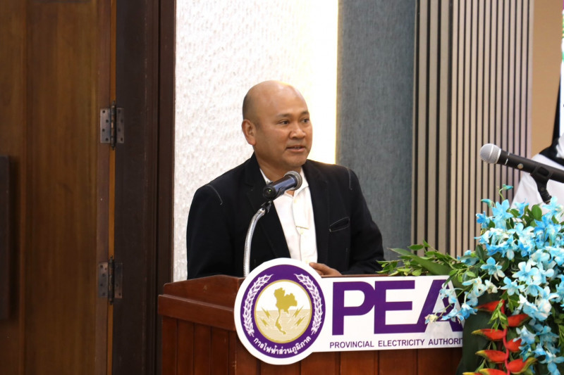 นายกล้าณรงค์ ยุติธรรม รองผู้ว่าราชการจังหวัดสุราษฎร์ธานี กล่าวต้อนรับในพิธีเปิดการสัมมนาความร่วมมือบริหารจัดการพลังงานสะอาด และระบบไฟสำรอง ในพื้นที่เกาะสมุย และพื้นที่ใกล้เคียง ประจำปี 2569 โดยมีนายประสิทธิ์ จันทร์ประสิทธิ์ รองผู้ว่าการภาคใต้ การไฟฟ้าส่วนภูมิภาค เป็นประธาน