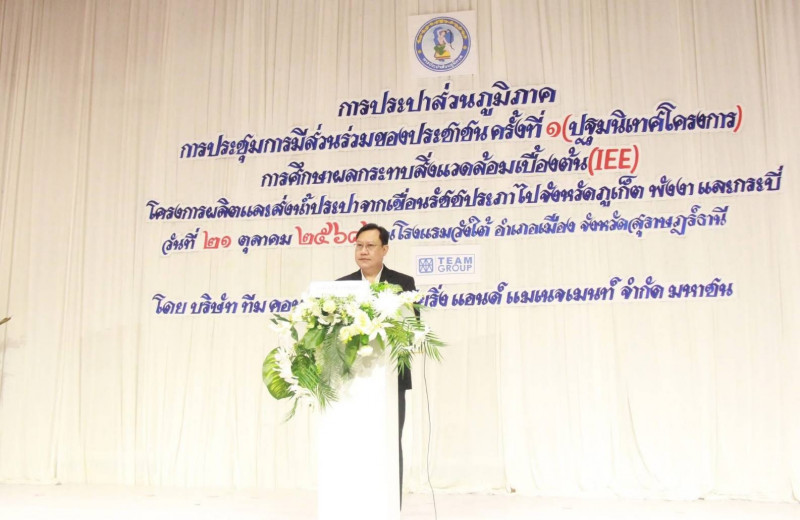 นายวิทศักดิ์ จำเริญนุสิต รองผู้ว่าราชการจังหวัดฯ เป็นประธานกล่าวเปิดการประชุมการมีส่วนร่วมของประชาชนครั้งที่ 1 (ปฐมนิเทศโครงการ) โครงการผลิตและส่งน้ำประปาจากเขื่อนรัชชประภา ไปจังหวัดภูเก็ต พังงา และกระบี่