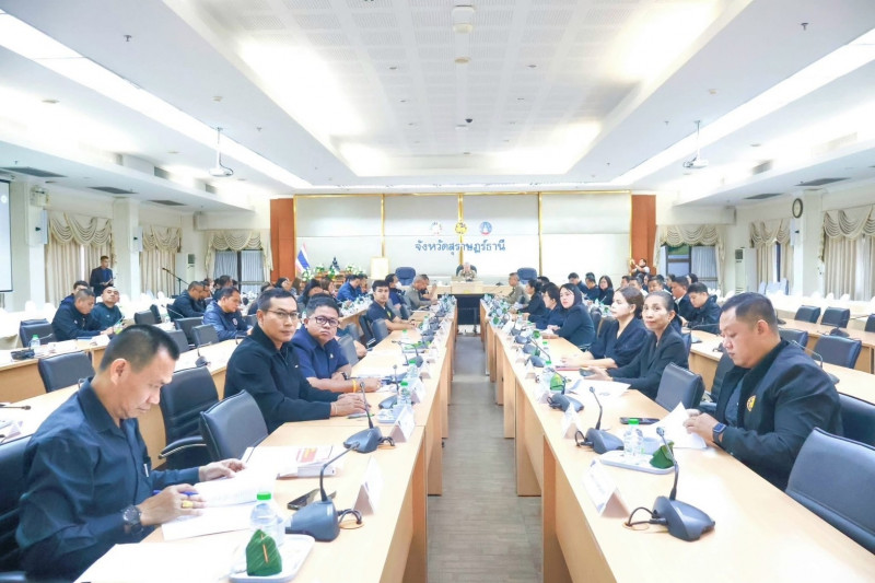 นายบันดาล สถิรชวาล รองผู้ว่าราชการจังหวัดสุราษฎร์ธานี เป็นประธานในการประชุมคณะกรรมการศูนย์อำนวยการป้องกันและปราบปรามยาเสพติดจังหวัด (ศอ.ปส.จ.สฎ.) พร้อมด้วยส่วนราชการที่เกี่ยวข้อง ครั้งที่ 10/2568 ณ ห้องประชุมศาลากลางจังหวัดสุราษฎร์ธานี เพื่อติดตามสถานการณ์ยาเสพติดในพื้นที่จังหวัดสุราษฎร์ธานี และร่วมกำหนดแนวทางดำเนินงานในระยะต่อไป เพื่อให้บรรลุผลอย่างเป็นรูปธรรม ทั้งในส่วนของการป้องกันในกลุ่มผู้มีโอกาสเข้าไปเกี่ยวข้องกับยาเสพติด การป้องกันและปราบปรามในพื้นที่เสี่ยง การขยายการมีส่วนร่วมของชุมชนในการแก้ไขปัญหายาเสพติด การแก้ไขปัญหาผู้เสพที่อยู่ในกระบวนการยุติธรรม การฟื้นฟูสภาพทางสังคม การปราบปรามเจ้าหน้าที่ของรัฐที่เกี่ยวข้องกับยาเสพติด รวมถึงการทำลายเครือข่ายผู้ค้า
