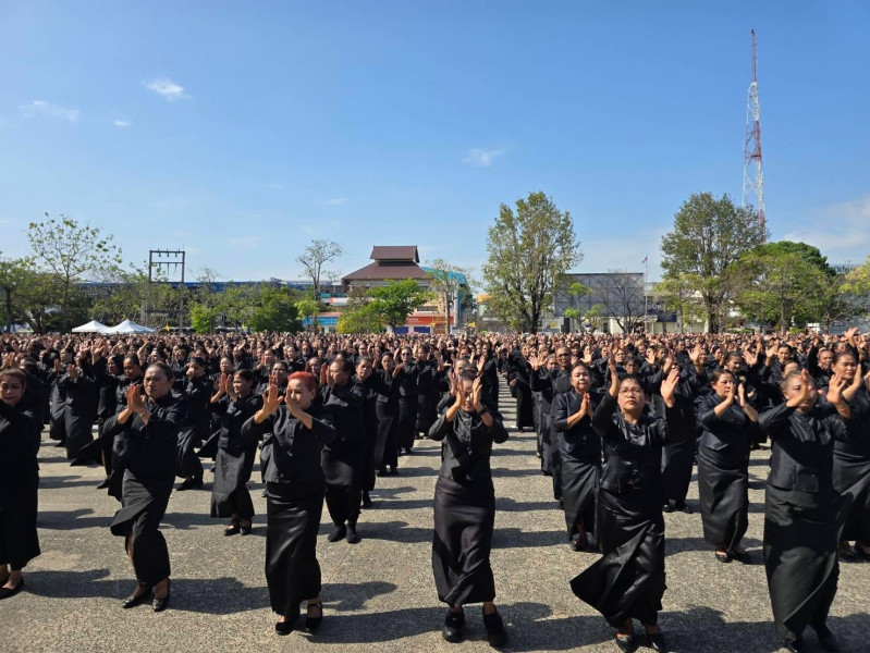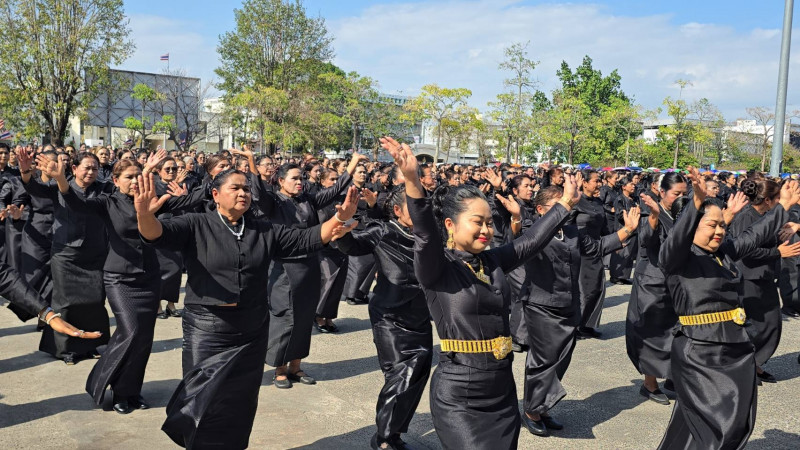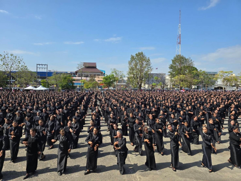 ก่อนพิธีปล่อยขบวน มีการรำถวายความอาลัยและการแปรอักษรอย่างยิ่งใหญ่ เพื่อน้อมรำลึกในพระมหากรุณาธิคุณของ สมเด็จพระนางเจ้าสิริกิติ์ พระบรมราชินีนาถ พระบรมราชชนนีพันปีหลวง จากสตรีผู้ร่วมงานกว่า 3,320 คน พร้อมการจัดรูปแบบแปรอักษร “สุราษฎร์ธานี” สะท้อนพลังความจงรักภักดีและความสามัคคีของสตรีชาวสุราษฎร์ธานี