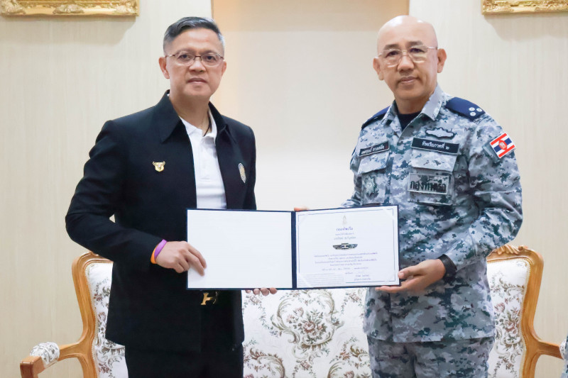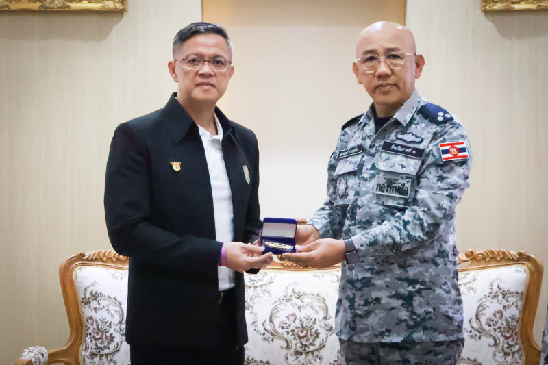 นายธีรุตม์ ศุภวิบูลย์ผล ผู้ว่าราชการจังหวัดสุราษฎร์ธานี ให้การต้อนรับ พลเรือโท เทพฤทธิ์ ลาภเหลือ ผู้บัญชาการทัพเรือภาคที่ 2 พร้อมคณะ ในโอกาสเข้าพบหารือข้อราชการ ณ ห้องศรีสุราษฎร์ ศาลากลางจังหวัดสุราษฎร์ธานี
