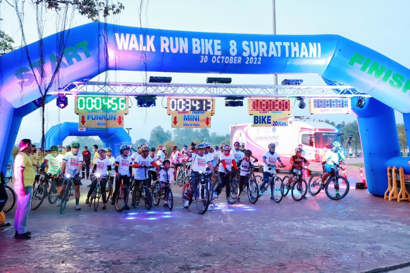 โดยพิธีเปิดกิจกรรมฯ นายวิชวุทย์ จินโต ผู้ว่าราชการจังหวัดสุราษฎร์ธานี ได้เปิดกรวยถวายราชสักการะเบื้องหน้าพระบรมฉายาลักษณ์พระบาทสมเด็จพระเจ้าอยู่หัว และสมเด็จพระนางเจ้าฯ พระบรมราชินี กล่าวคำถวายราชสดุดี ร่วมร้องเพลงสรรเสริญพระบารมี และรับฟังการกล่าวรายงาน ตามด้วยการอบอุ่นร่างกาย (warm up) และประธานได้ปล่อยขบวนด้วยแตรลม สำหรับการวิ่งครั้งนี้มี 2 แบบ คือ check in SuperMini 14 กิโลเมตร และ Fun Run 5 กิโลเมตร รวมทั้งการปั่นจักรยาน 20 กิโลเมตร ด้วย ซึ่งทุกคนที่เข้าเส้นชัยจะได้รับเหรียญที่ระลึกทุกคน