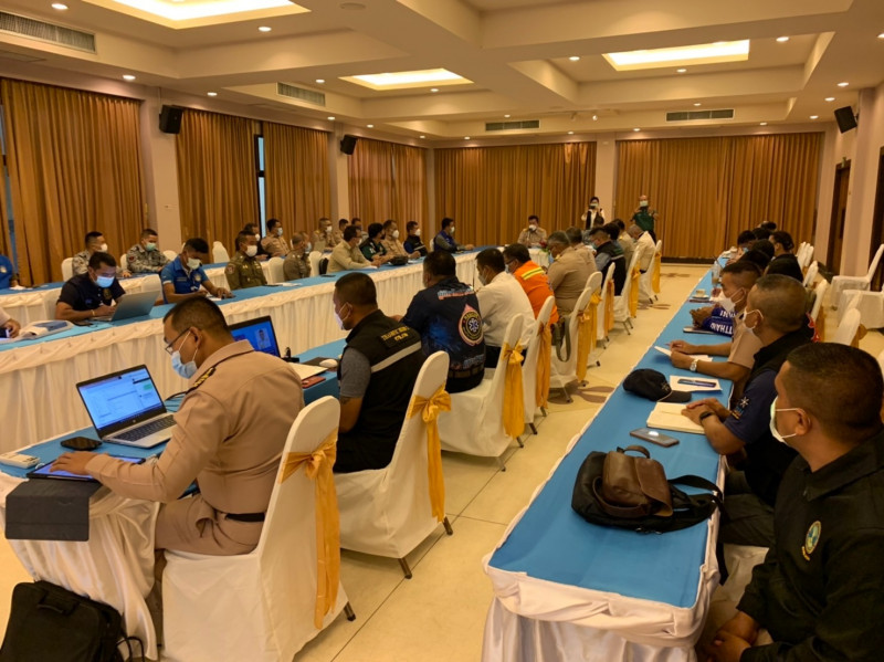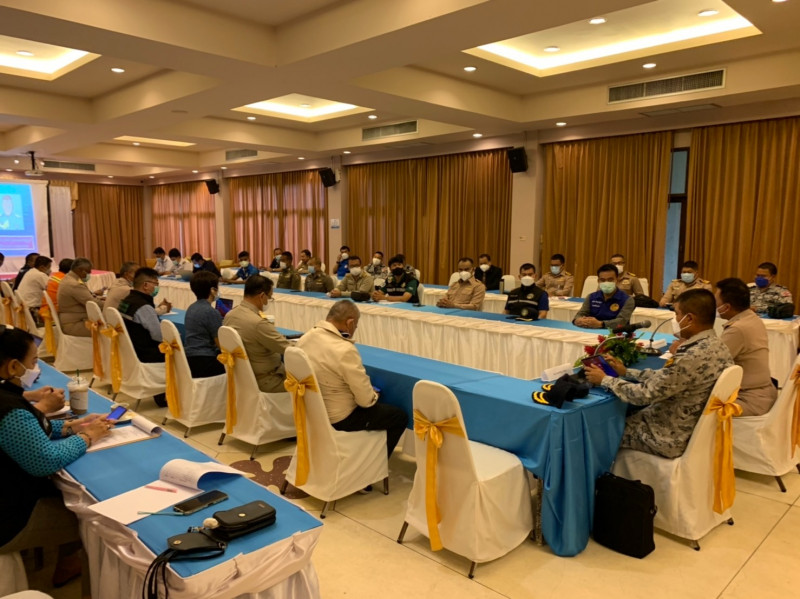 นายสุทธิพงษ์ คล้ายอุดม รองผู้ว่าราชการจังหวัดสุราษฎร์ธานี เป็นประธานการประชุมติดตามผลการเตรียมการฝึกการคันหาและช่วยเหลือผู้ประสบภัยในทะเลและการขจัดคราบน้ำมันในทะเล