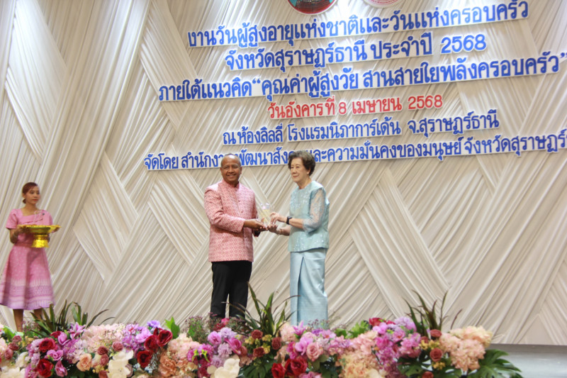 ความเข้มแข็งของครอบครัว และผู้สูงอายุที่เป็นแบบอย่างที่ดีในสังคม จังหวัดสุราษฎร์ธานี ประจำปี ๒๕๖๘ เพื่อเป็นขวัญและกำลังใจแก่ผู้สูงอายุ