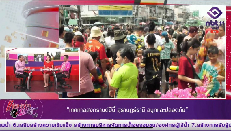 นายนันธวัช เจริญวรรณ รองผู้ว่าราชการจังหวัดสุราษฎร์ธานี ออกรายการ "ผู้ว่าฯคุยกับประชาชน" และ "รายการแหลงข่าวชาวใต้" เพื่อประชาสัมพันธ์ การเตรียมความพร้อมด้านการป้องกันและลดอุบัติเหตุช่วงเทศกาลสงกรานต์ 2568 ระหว่างวันที่ 11-17 เมษายน 2568 และการจัดงานเทศกาลสงกรานต์ 2568 ในพื้นที่ของจังหวัดสุราษฎร์ธานี รวมทั้งความคืบหน้าการเลือกตั้งนายกฯและสมาชิกสภาเทศบาลในพื้นที่จังหวัดสุราษฎร์ธานี