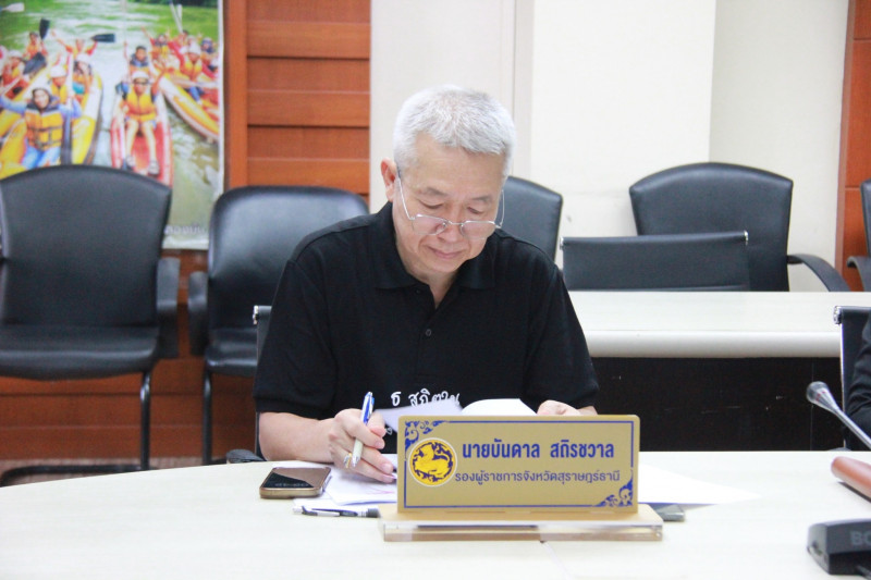 นายจุมพฏ วรรณฉัตรสิริ ผู้ว่าราชการจังหวัดสุราษฎร์ธานี เป็นประธานประชุมคณะกรรมการบริหารงานกลุ่มจังหวัดแบบบูรณาการกลุ่มจังหวัดภาคใต้ฝั่งอ่าวไทย (ก.บ.ก.) (5 จังหวัด) ครั้งที่ 7/2568 ณ ห้องประชุมตาปี ชั้น 4 ศาลากลางจังหวัดสุราษฎร์ธานี และห้องประชุมแต่ละจังหวัดในกลุ่มจังหวัดภาคใต้ฝั่งอ่าวไทย ผ่านระบบวีดิทัศน์ทางไกล (Video Conference System) เพื่อติดตามการดำเนินแผนงาน/โครงการของกลุ่มจังหวัดภาคใต้ฝั่งอ่าวไทย ให้เป็นไปอย่างมีประสิทธิภาพ รวมทั้งหารือประเด็นอื่นๆ ที่เกี่ยวข้องกับอำนาจหน้าที่ของ ก.บ.ก. ให้บรรลุผลตามวัตถุประสงค์หรือเป้าหมายที่วางไว้ อันจะเกิดประโยชน์ต่อประเทศชาติและประชาชนในพื้นที่ต่อไป โดยมีนายบันดาล สถิรชวาล รองผู้ว่าราชการจังหวัดสุราษฎร์ธานี พร้อมด้วยคณะกรรมการฯ หัวหน้าส่วนราชการ และผู้เกี่ยวข้อง ร่วมประชุม