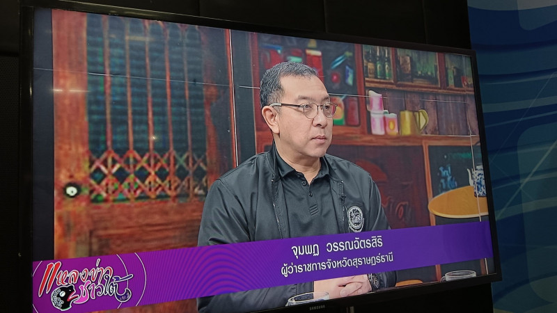 นายจุมพฏ วรรณฉัตรสิริ ผู้ว่าราชการจังหวัดสุราษฎร์ธานี ร่วมออกรายการ "แหล่งข่าวชาวใต้" ช่วง "ผู้ว่าฯ คุยกับประชาชน" ในประเด็นบทสรุปการขับเคลื่อนจังหวัดสุราษฎร์ธานีช่วงปลายปี มาตรการยกระดับความปลอดภัยทางถนน กิจกรรมส่งท้ายปีเก่าต้อนรับปีใหม่ 2569 และงานสมโภชศาลหลักเมือง และกาชาดสุราษฎร์ธานี