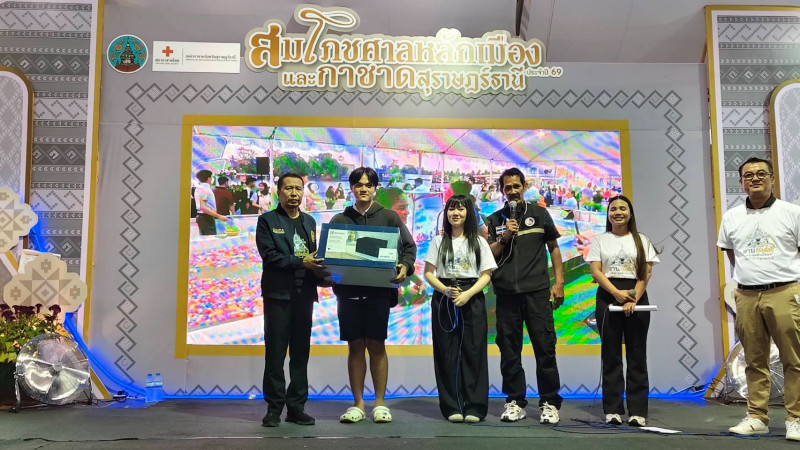 บรรยากาศภายในงานเป็นไปอย่างคึกครื้น โดยเฉพาะร้านนาวากาชาดที่ได้รับความสนใจอย่างล้นหลาม ประชาชนต่างร่วมลุ้นโชคกันอย่างตื่นเต้น ก่อนเสียงเฮดังสนั่น เมื่อรางวัลใหญ่ “รถจักรยานยนต์” ออกแก่ผู้โชคดี สร้างรอยยิ้มและความดีใจให้กับผู้ร่วมงานตลอดค่ำคืน นอกจากนี้ ภายในงานยังเต็มไปด้วยสีสันจากร้านค้า การแสดง และกิจกรรมหลากหลาย พร้อมเชิญชวนประชาชนร่วมเที่ยวงานและลุ้นโชคได้อย่างต่อเนื่องตลอดระยะเวลาการจัดงาน