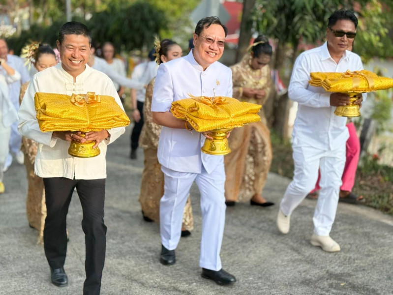 นายวิทศักดิ์ จำเริญนุสิต รองผู้ว่าราชการจังหวัดฯ เป็นประธาน ในพิธีปล่อยขบวนแห่ผ้าขึ้นพระธาตุเจดีย์วัดเขาสุวรรณประดิษฐ์ จังหวัดสุราษฎร์ธานี