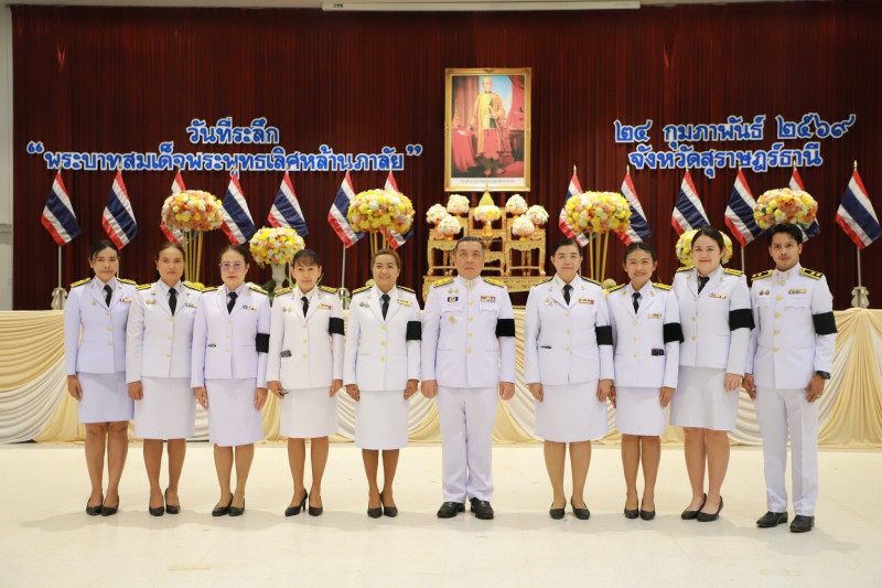 นายจุมพฏ วรรณฉัตรสิริ ผู้ว่าราชการจังหวัดสุราษฎร์ธานี เป็นประธานในพิธีวางพานพุ่มดอกไม้สดถวายราชสักการะ เนื่องในวันที่ระลึกพระบาทสมเด็จพระพุทธเลิศหล้านภาลัย ประจำปี 2569 โดยมีนายกล้าณรงค์ ยุติธรรม รองผู้ว่าราชการจังหวัดสุราษฎร์ธานี นายจักรกฤษณ์ ฝั่งชลจิตร์ รองผู้ว่าราชการจังหวัดสุราษฎร์ธานี หัวหน้าส่วนราชการ เหล่ากาชาด ศาล ทหาร ตำรวจ เจ้าหน้าที่ และพสกนิกรทุกหมู่เหล่า เข้าร่วมพิธี