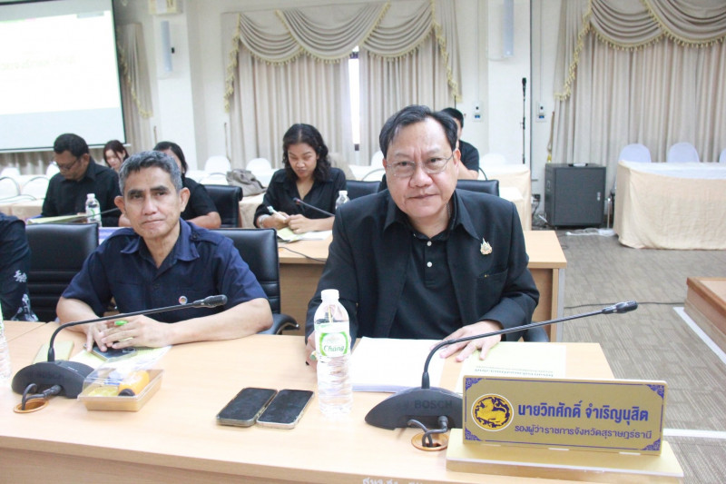 นายจุมพฏ วรรณฉัตรสิริ ผู้ว่าราชการจังหวัดสุราษฎร์ธานี พร้อมด้วยรองผู้ว่าราชการจังหวัด หัวหน้าส่วนราชการ นายอำเภอ และผู้เกี่ยวข้อง ร่วมรับฟังรายละเอียดโครงการ “ด้วยจงรักและภักดี” สร้างประโยชน์ให้ชุมชน ประชาชนมีความสุข และร่วมหารือแนวทางการดำเนินงานที่จะช่วยให้เกิดความร่วมมือกับประชาชนในชุมชน ณ ห้องประชุมเมืองคนดี ชั้น 5 ศาลากลางจังหวัดสุราษฎร์ธานี โดยมีคณะผู้ดำเนินโครงการฯ บริษัท ชุมชนเข้มแข็ง พอเพียง (ประเทศไทย) จำกัด เข้าร่วมหารือ เพื่อให้การดำเนินโครงการดังกล่าว เป็นไปอย่างมีประสิทธิภาพบรรลุวัตถุประสงค์ที่วางไว้