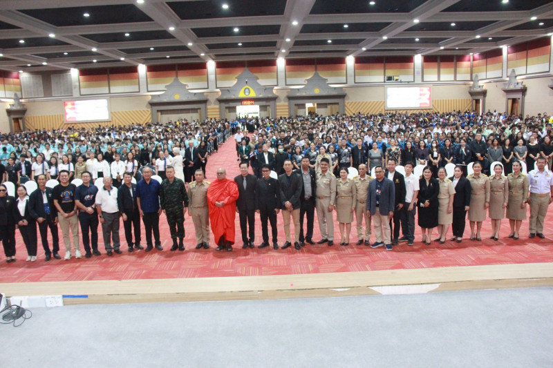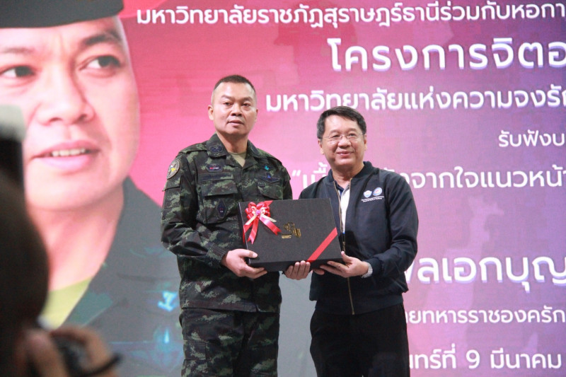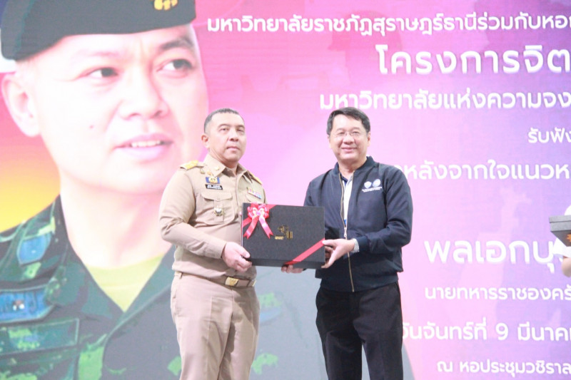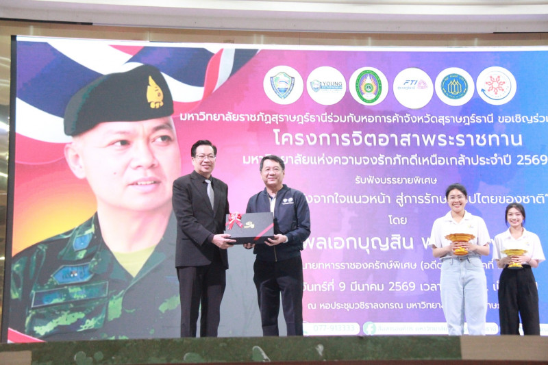สำหรับกิจกรรมในวันนี้ จัดขึ้นโดยมหาวิทยาลัยราชภัฏสุราษฎร์ธานี ร่วมกับคณะกรรมการร่วมภาคเอกชน 3 สถาบันจังหวัดสุราษฎร์ธานี สมัชชาการศึกษาจังหวัดสุราษฎร์ธานี และภาคีเครือข่าย เพื่อเสริมสร้างความเข้าใจ สร้างพื้นฐานที่ถูกต้องเกี่ยวกับสถาบันหลักของชาติ ส่งเสริมพลังแห่งความจงรักภักดีให้แน่นแฟ้นยิ่งขึ้น รวมทั้งเพื่อขับเคลื่อนนโยบายจิตอาสา สนับสนุนการดำเนินงานของศูนย์อำนวยการจิตอาสาพระราชทานภาค 4 และนโยบายด้านจิตอาสาของมหาวิทยาลัยอย่างเป็นรูปธรรม.