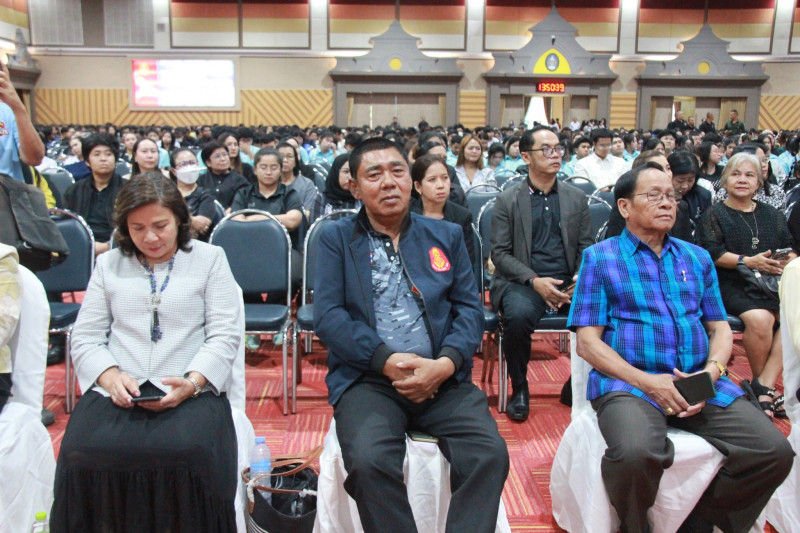 นายจุมพฏ วรรณฉัตรสิริ ผู้ว่าราชการจังหวัดสุราษฎร์ธานี เป็นประธานเปิดโครงการจิตอาสาพระราชทาน มหาวิทยาลัยแห่งความจงรักภักดีเหนือเกล้า พร้อมกล่าวต้อนรับพลเอก บุญสิน พาดกลาง นายทหารราชองครักษ์พิเศษ และที่ปรึกษาผู้บัญชาการทหารบก ที่ให้เกียรติเดินทางมาร่วมกิจกรรมและบรรยายพิเศษ เพื่อถ่ายทอดประสบการณ์และองค์ความรู้ในการสร้างจิตสำนึกรักชาติ ศาสน์ กษัตริย์ แก่นักเรียน นักศึกษา และผู้เข้าร่วมกิจกรรม ณ หอประชุมวชิราลงกรณ มหาวิทยาลัยราชภัฏสุราษฎร์ธานี