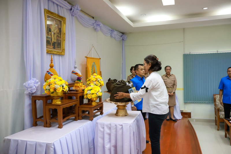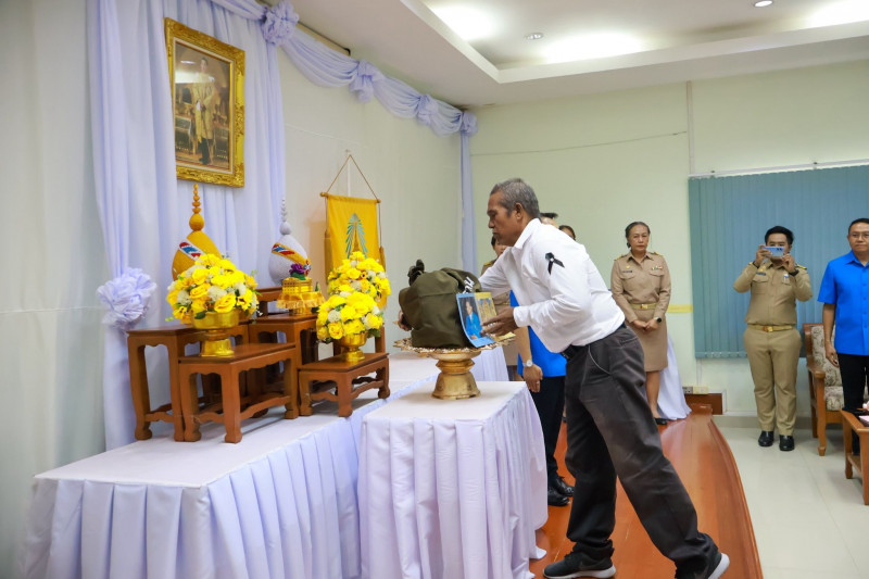 ก่อนการมอบสิ่งของพระราชทาน ได้มีพิธีถวายความเคารพหน้าพระบรมฉายาลักษณ์พระบาทสมเด็จพระเจ้าอยู่หัว เปิดกรวยดอกไม้ ธูป เทียนแพ และกล่าวรายงานสถานการณ์ จากนั้นประธานในพิธีได้มอบสิ่งของพระราชทานแก่ผู้ประสบภัย พร้อมกล่าวสำนึกในพระมหากรุณาธิคุณอย่างหาที่สุดมิได้