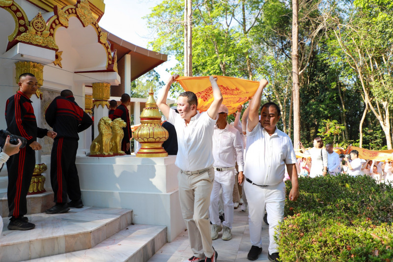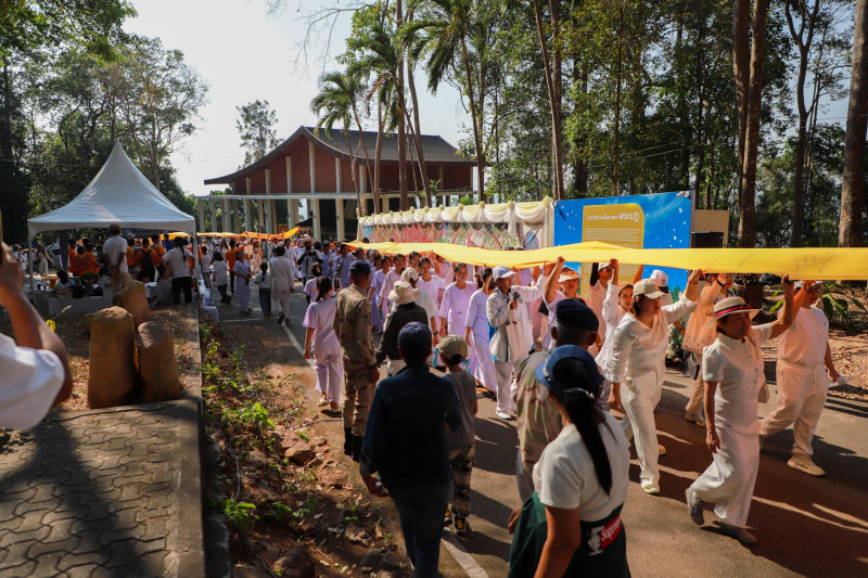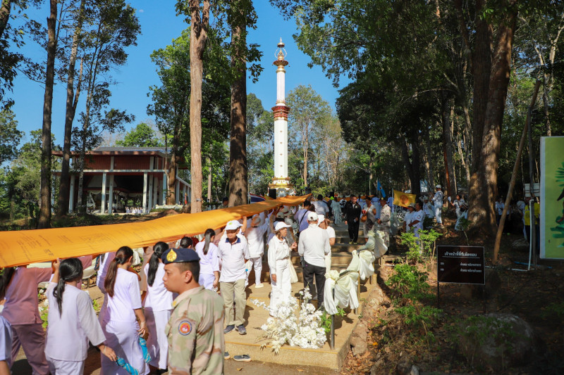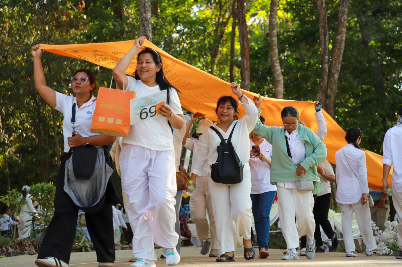 นายจุมพฎ วรรณฉัตรสิริ ผู้ว่าราชการจังหวัดสุราษฎร์ธานี นำคณะข้าราชการ ทหาร ตำรวจ องค์กรปกครองส่วนท้องถิ่น ภาคเอกชน และพี่น้องประชาชนจากทั้ง 19 อำเภอ พร้อมใจกันสวมเสื้อผ้าสีขาวบริสุทธิ์ ร่วมขบวนอัญเชิญผืนผ้าสีเหลืองและผ้าพระบฎ (ผ้าเขียนภาพพุทธประวัติ) เพื่อนำไปห่มองค์พระธาตุศรีสุราษฎร์ บนยอดเขาท่าเพชร อำเภอเมืองสุราษฎร์ธานี เนื่องในงาน “แห่ผ้าห่มพระธาตุศรีสุราษฎร์ แลธรรมชาติเขาท่าเพชร ครั้งที่ 16 ประจำปี 2569” ท่ามกลางพลังศรัทธาของพุทธศาสนิกชนและนักท่องเที่ยวที่หลั่งไหลมาร่วมงานจากทั่วทุกสารทิศ
