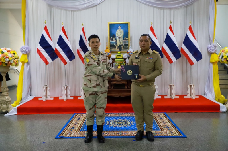 นายจุมพฎ วรรณฉัตรสิริ ผู้ว่าราชการจังหวัดสุราษฎร์ธานี ในฐานะผู้บังคับการกองอาสารักษาดินแดนจังหวัดสุราษฎร์ธานี เป็นประธานในพิธีมอบ “เข็มอาสารักษาดินแดนสดุดี” พร้อมใบประกาศสดุดี ประจำปี 2569 ให้แก่ผู้บังคับบัญชา เจ้าหน้าที่ และสมาชิกกองอาสารักษาดินแดน เพื่อยกย่องผู้ประกอบคุณประโยชน์อย่างยิ่งต่อกิจการกองอาสารักษาดินแดนจังหวัดสุราษฎร์ธานี