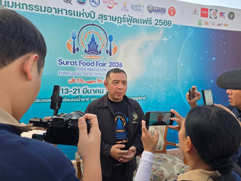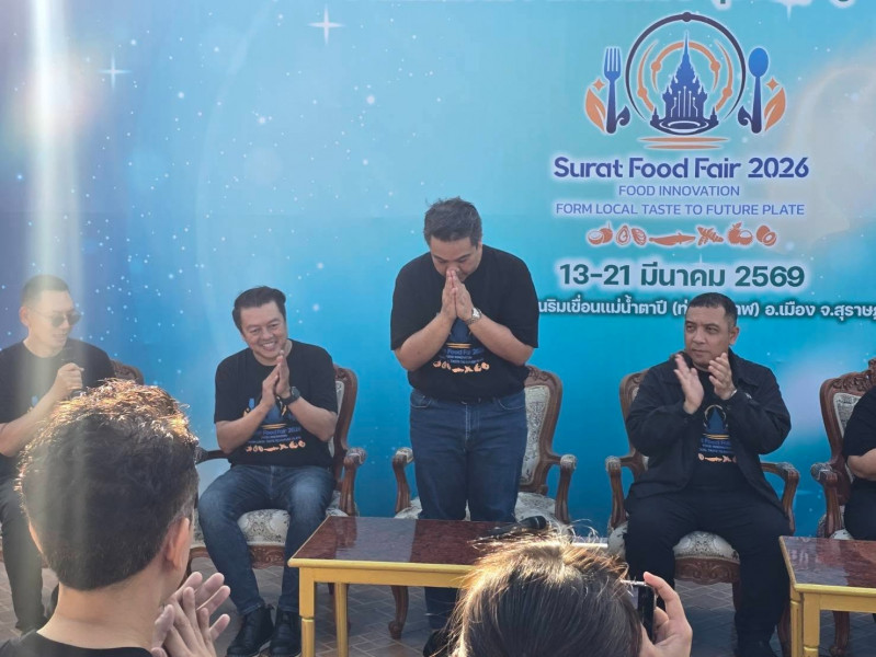 วันที่ 13 มีนาคม 2569 เวลา 17:00 น. จังหวัดสุราษฎร์ธานีจัดการแถลงข่าวเตรียมความพร้อมการจัดงาน “สุราษฎร์ฟู้ดแฟร์ 2026”