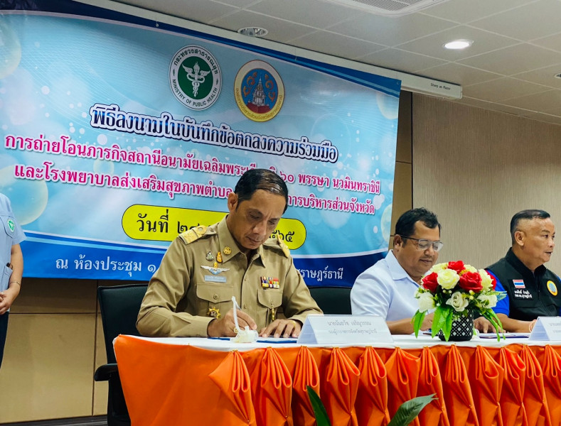 เวลา 10.00 น. นายนันธวัช เจริญวรรณ รองผู้ว่าราชการจังหวัดสุราษฎร์ธานี ร่วมลงนามในข้อตกลงความร่วมมือเพื่อพัฒนาศักยภาพขององค์การบริหารส่วนจังหวัดในด้านการสาธารณสุขมูลฐานและบริการสุขภาพระดับปฐมภูมิ จำนวน 97 แห่ง ระหว่าง สำนักงานสาธารณสุขจังหวัดสุราษฎร์ธานี และองค์การบริหารส่วนจังหวัดสุราษฎร์ธานี ณ ห้องประชุมสำนักงานสาธารณสุขจังหวัดสุราษฎร์ธานี ชั้น 5