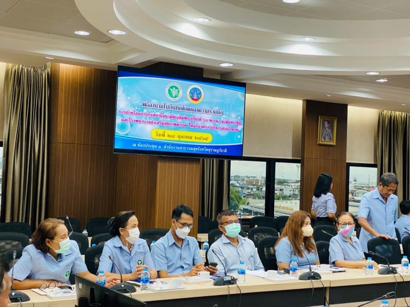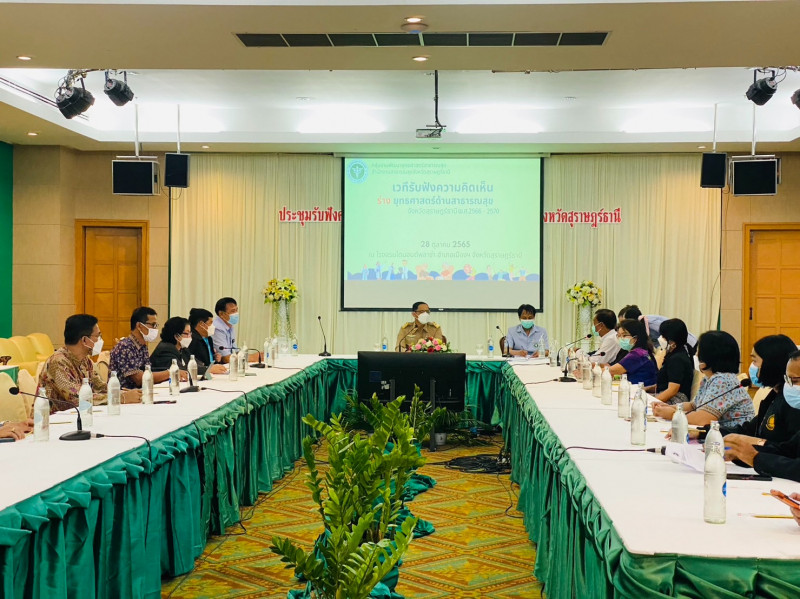 เวลา 13.30 น. นายนันธวัช เจริญวรรณ รองผู้ว่าราชการจังหวัดสุราษฎร์ธานี เป็นประธานในการประชุมรับฟังความคิดเห็นต่อร่างแผนพัฒนา ยุทธศาสตร์สาธารณสุข จังหวัดสุราษฎร์ธานี พ.ศ.2566-2570 ภายใต้ประเด็นยุทธศาสตร์ "สังคมสูงวัยคุณภาพ NCD หายได้ที่สุราษฎร์ธานี มหานครเวชพฤกษา ภูมิปัญญาเมืองคนดี ต้นแบบเมืองสมุนไพร" ณ ห้องโกเมน โรงแรมไดมอนด์ พลาซ่า