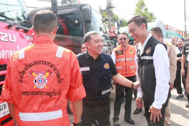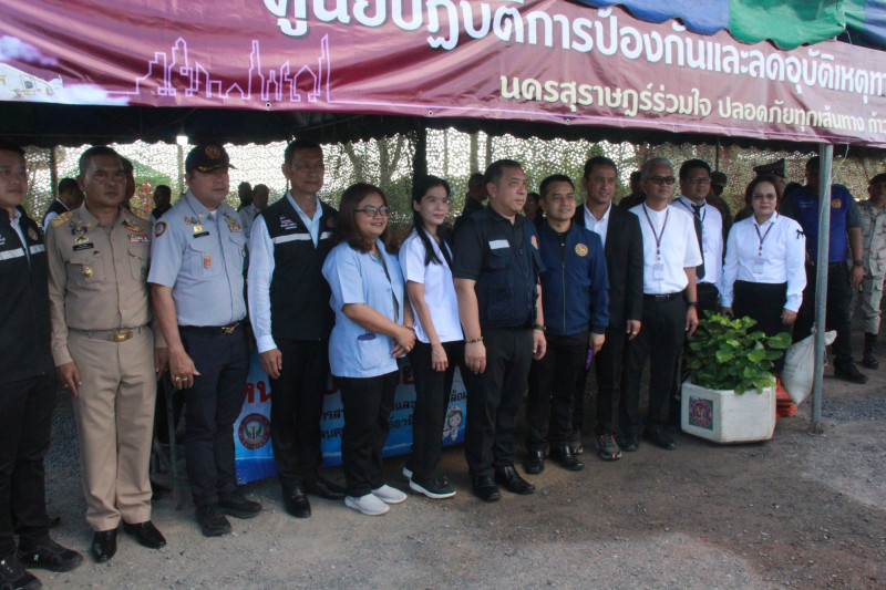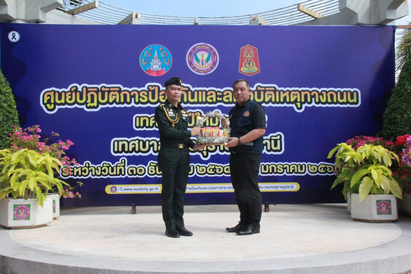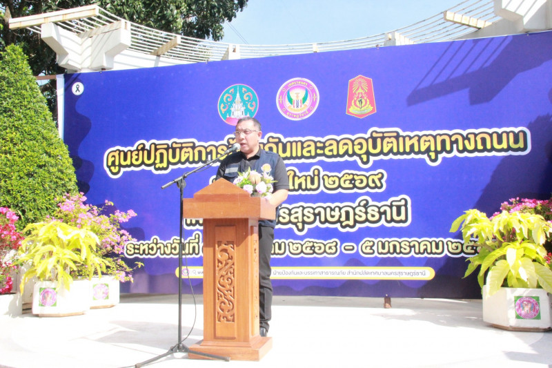 นายจุมพฏ วรรณฉัตรสิริ ผู้ว่าราชการจังหวัดสุราษฎร์ธานี เป็นประธานเปิดศูนย์ปฏิบัติการป้องกันและลดอุบัติเหตุทางถนนเทศกาสปีใหม่ 2569 โดยเทศบาลนครสุราษฎร์ธานี ร่วมกับมณฑลทหารบกที่ 45 อำเภอเมืองสุราษฎร์ธานี และภาคีเครือข่ายจัดขึ้น ณ บริเวณสวนสาธารณะบ่อโฉลก ต.บางกุ้ง อ.เมืองสุราษฎร์ธานี โดยมีนายจักรกฤษณ์ ฝั่งชลจิตร์ รองผู้ว่าราชการจังหวัดสุราษฎร์ธานี พร้อมด้วยหัวหน้าส่วนราชการ นายอำเภอ ผู้บริหารเทศบาลฯ บุคลากร เจ้าหน้าที่ และผู้แทนหน่วยงานที่เกี่ยวข้อง เข้าร่วม