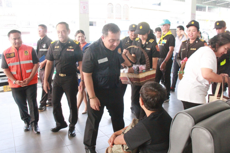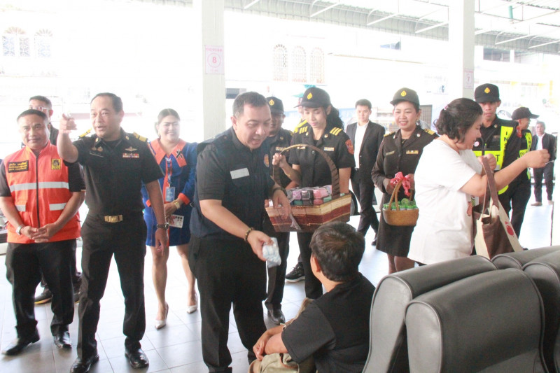 โอกาสนี้ ผู้ว่าราชการจังหวัดสุราษฎร์ธานี ได้กล่าวทักทายเจ้าหน้าที่ประจำจุดให้บริการ รวมทั้งพนักงานขับรถโดยสาร และประชาชนที่มาใช้บริการ ให้เดินทางถึงจุดหมายปลายทางอย่างปลอดภัย พร้อมกับมอบของขวัญปีใหม่ในเทศกาลแห่งความสุขนี้ด้วย.