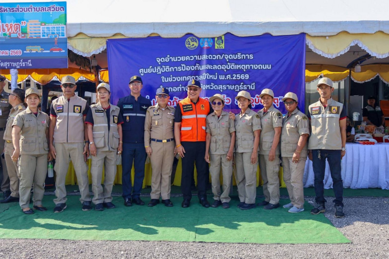 นายวิทศักดิ์ จำเริญนุสิต รองผู้ว่าราชการจังหวัดฯ ออกตรวจเยี่ยมและติดตามผลการปฏิบัติงานศูนย์อำนวยการร่วมป้องกันและลดอุบัติเหตุทางถนนช่วงเทศกาลปีใหม่ พ.ศ. 2569 จังหวัดสุราษฎร์ธานี ณ จุดอำนวยความสะดวก จุดบริการ ช่วงเทศกาลปีใหม่ พ.ศ.2569 จำนวน 6 จุด ดังนี้
