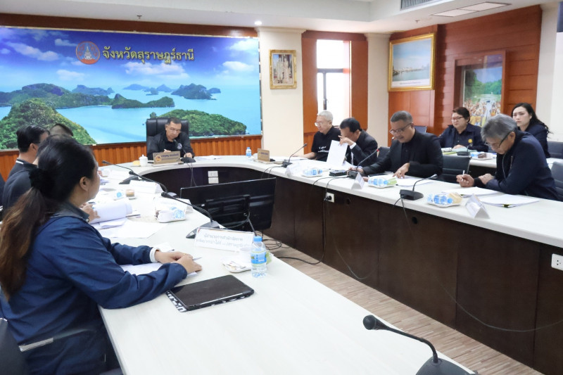 นายจุมพฏ วรรณฉัตรสิริ ผู้ว่าราชการจังหวัดสุราษฎร์ธานี เป็นประธานประชุมหารือการดำเนินโครงการชุดลอกสระเก็บน้ำทุ่งหัวสน บ้านพุฒ หมู่ที่ 3 ตำบลช้างขวา อำเภอกาญจนดิษฐ์ จังหวัดสุราษฎร์ธานี โดยมีนายบันดาล สถิรชวาล รองผู้ว่าราชการจังหวัดสุราษฎร์ธานี พร้อมด้วยผู้แทนหน่วยงานราชการ และผู้เกี่ยวข้อง เข้าร่วม ณ ห้องตาปี ชั้น 4 ศาลากลางจังหวัดสุราษฎร์ธานี เพื่อหารือการดำเนินการในส่วนที่เกี่ยวข้องกับโครงการดังกล่าว