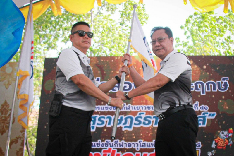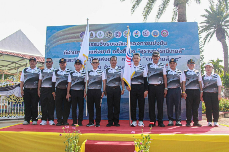 นายวิทศักดิ์ จำเริญนุสิต รองผู้ว่าราชการจังหวัดฯ เป็นประธานกิจกรรมวิ่งธงเฉลิมฉลองการแข่งขันกีฬาเยาวชนแห่งชาติ ครั้งที่ 41 สุราษฎร์ธานีเกมส์ และกีฬาอาวุโสแห่งชาติ ครั้งที่ 8 ตาปีเกมส์